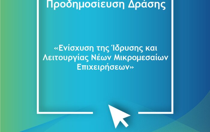 emetris2023-10-12T08:33:23+02:00ΠΡΟΔΗΜΟΣΙΕΥΣΗ ΔΡΑΣΗΣ “ΕΝΙΣΧΥΣΗ ΤΗΣ ΙΔΡΥΣΗΣ ΚΑΙ ΛΕΙΤΟΥΡΓΙΑΣ ΝΕΩΝ ΜΙΚΡΟΜΕΣΑΙΩΝ ΕΠΙΧΕΙΡΗΣΕΩΝ”emetris2023-10-12T08:33:23+02:0012 Οκτωβρίου, 2023|